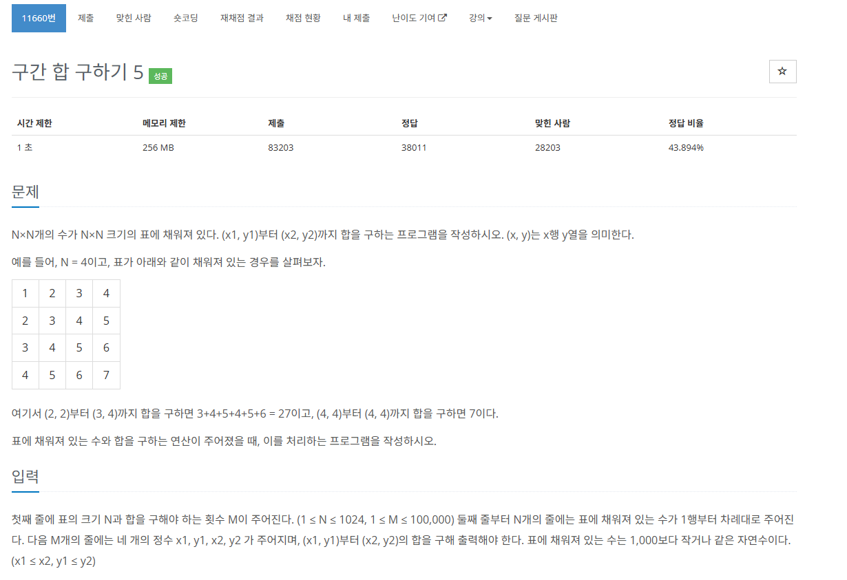 | [백준][C++]11660번. 구간 합 구하기5 (0) | 2024.11.20 |