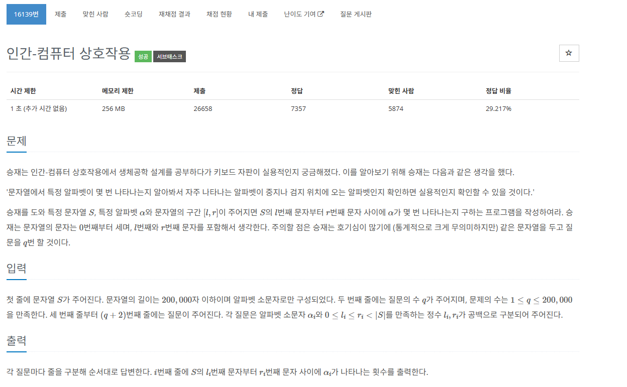 | [백준][C++]16139번. 인간-컴퓨터 상호작용 (0) | 2024.11.19 |