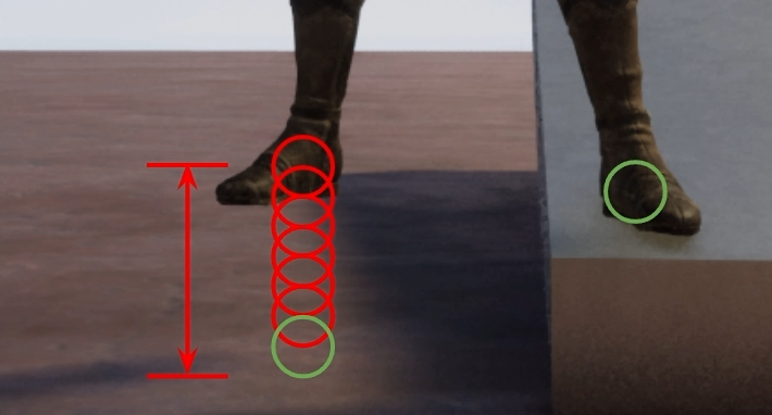 마지막으로 만약 캐릭터가 경사진 곳으로 움직이게 된다면 발이 공중에 뜨게 되는데 이때 Inverse Kinematic을
