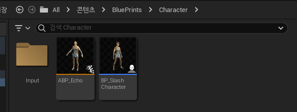 일단 애니메이션/애니메이션 블루프린트를 만들어주자 이때 Skeleton은 캐릭터의 블루프린트의 스켈레톤을 사용해주자