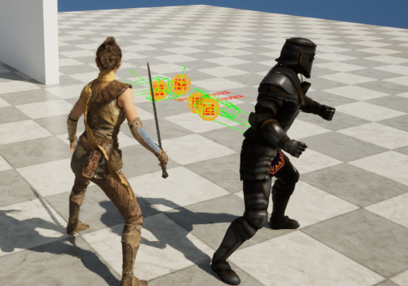 이것은 공격애니메이션몽타주에서 Trail을 추가하는 것으로 할 수 있는데 Trail은 일정구간에 파티클을 실행시킬수 있는것으로 시작과 끝점을 지정해주면 된다. 이 시작과 끝점은 소켓으로 구현해두면 된다.