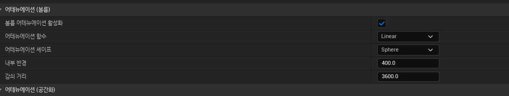 여기서 피격음이 거리에 따라 어떻게 다르게 들릴지 설정하기 위해 사운드 어테뉴에이션을 추가해주자.