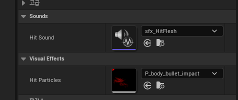 우선 Cascade 시스템으로 제작된 피격 효과를 가져와서 사용해보자. 적마다 다른 피격 이펙트가 가능하도록 적 클래스에 변수를 만들어주자.