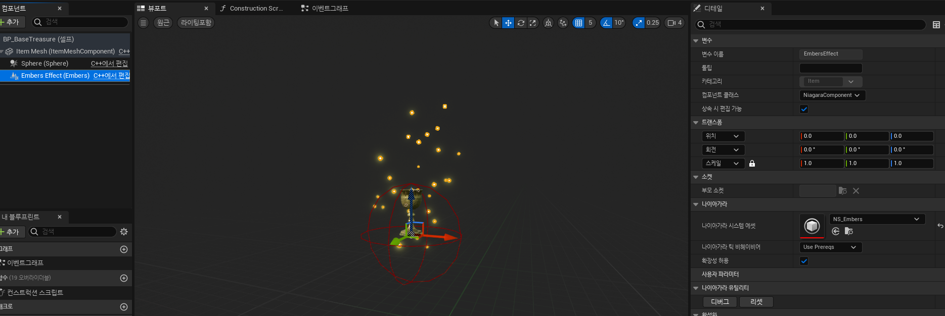 효과는 성공적으로 만들었으니 이를 모든 아이템에서 작동하도록 아이템 코드에 나이아가라 시스템 변수 추가해주자.