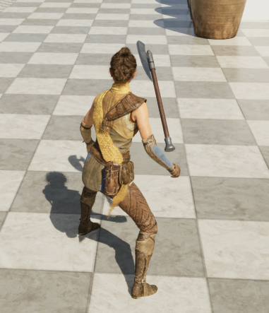 이 Axe로 매쉬를 변경하고 실행해서 잡아보면 문제가 생기는 것을 알 수 있다. 손에서 떨어져 있으며 도끼의 방향도 잘 못된것을 알 수 있다.