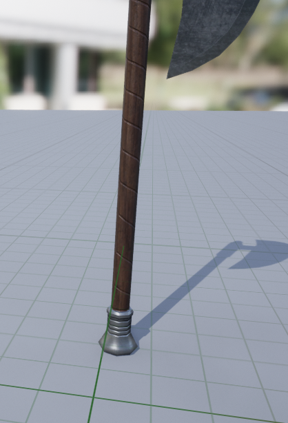 우선 무료 무기 에셋 중에 Free Fantasy Weapon Sample Pack이라는 에셋을 추가하여 사용해보자. 무기 중에 Axe를 보면 원점이 손잡이에 있는 것을 볼 수 있다.