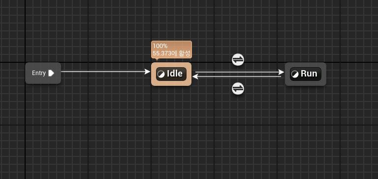 State Machine 내부는 Idle과 Run State가 Transition으로 변경될 수 있도록 한다. 이때 Transition은