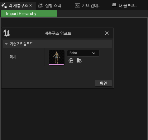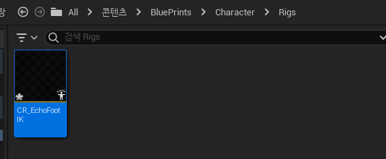 그리고 캐릭터의 뼈를 가져 import해주자 우리가 여기서 사용할 것은 발부분의 가상 뼈나 IK 뼈를 사용할 것이다.