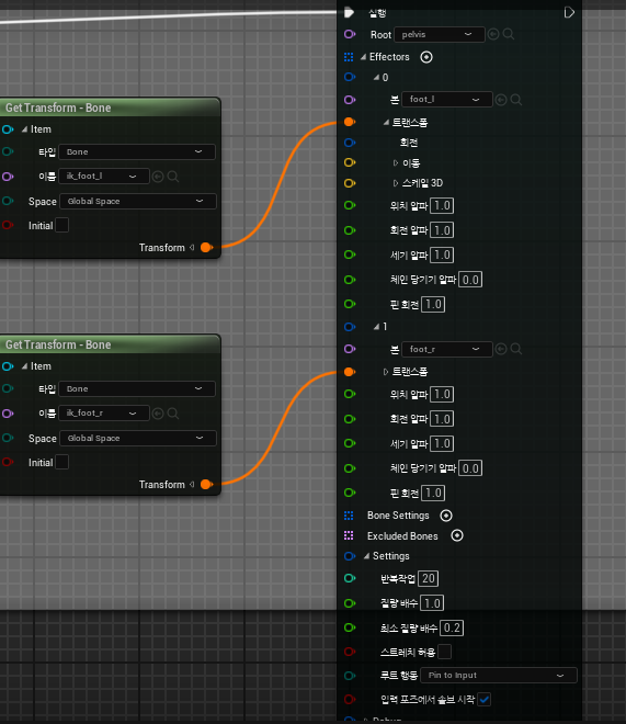 4.이 값이 IK 발 쪽 뼈에 적용되도록 하자.